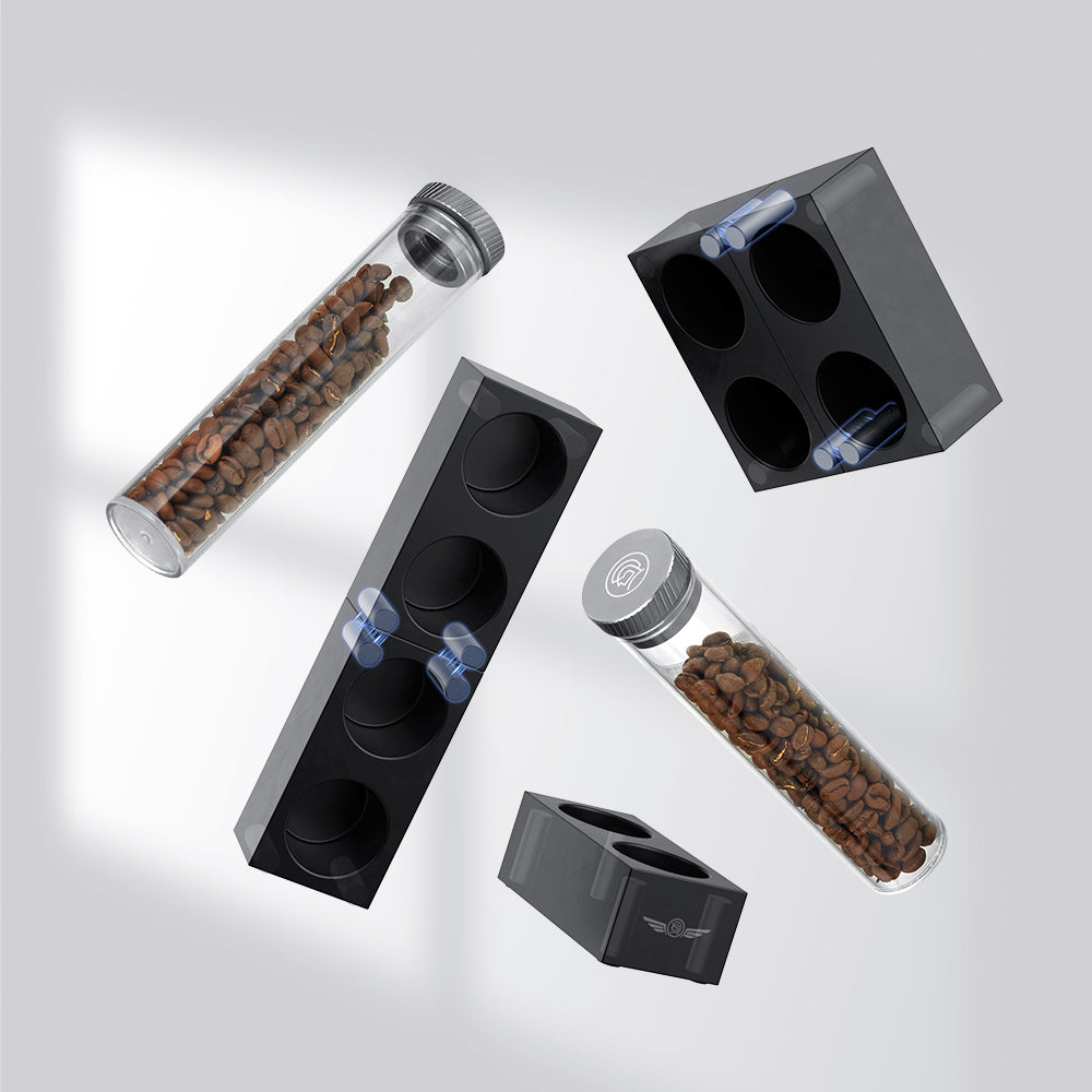 Snap the tubes together with built-in magnets and arrange them any way you like. Perfect for organizing your daily doses of coffee beans with a clean, minimal setup.