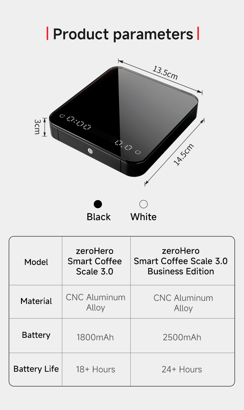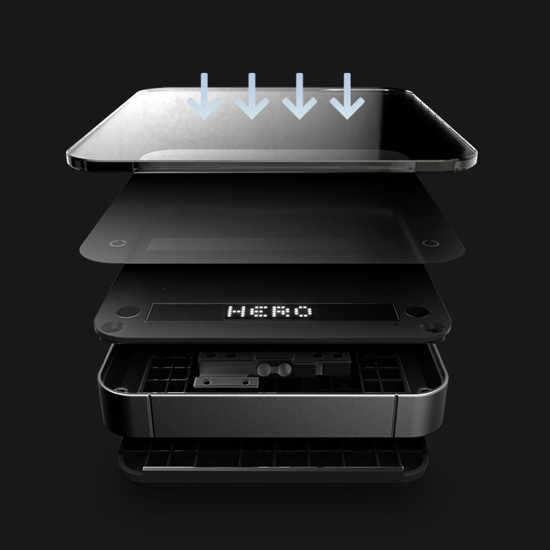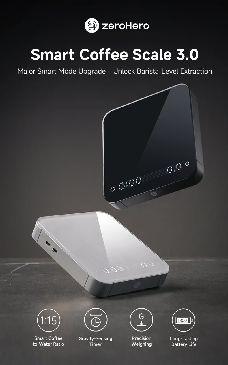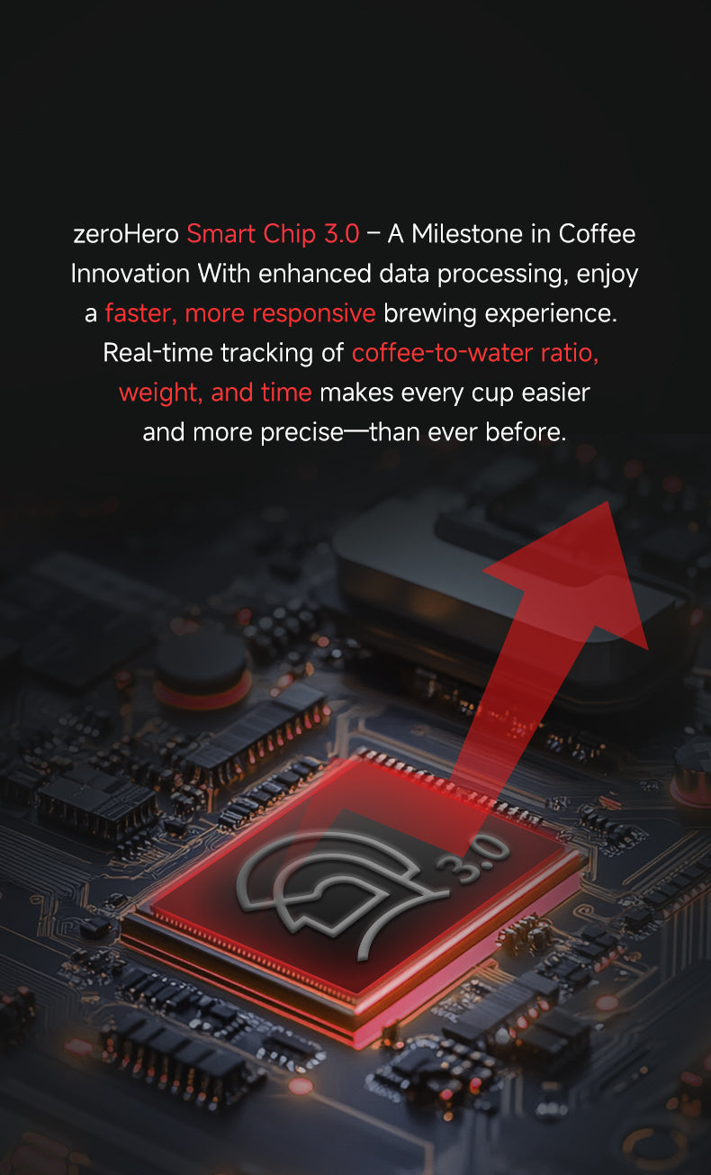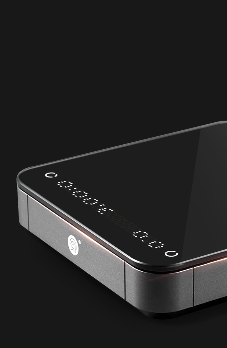 A zeroHero Smart Mini Scale introduz uma nova era de exibição gráfica com sua tela de matriz de pontos LED atualizada. Apresentando programas inovadores como guias de preparo de três estágios e prática de controle de fluxo, a exibição oferece uma experiência de preparo clara e intuitiva, perfeita para novatos e profissionais. -